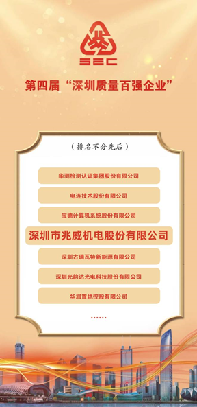 高质量勇毅前行,不朽情缘mg官网机电上榜“深圳市质量百强企业”